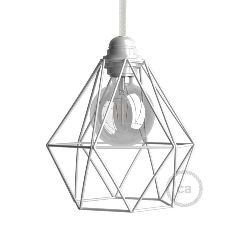 This White Diamond Cage Lampshade is one of our most versatile lampshades. Perfect for feature pendant lamps or for focused light on the counter of a bar or eating area. Superior quality and unique design make this exposed lampshade a popular choice. It works well with a bakelite or metal lamp holder with dye on dye finish and your choice of E27 bulb. Available in several finishes.